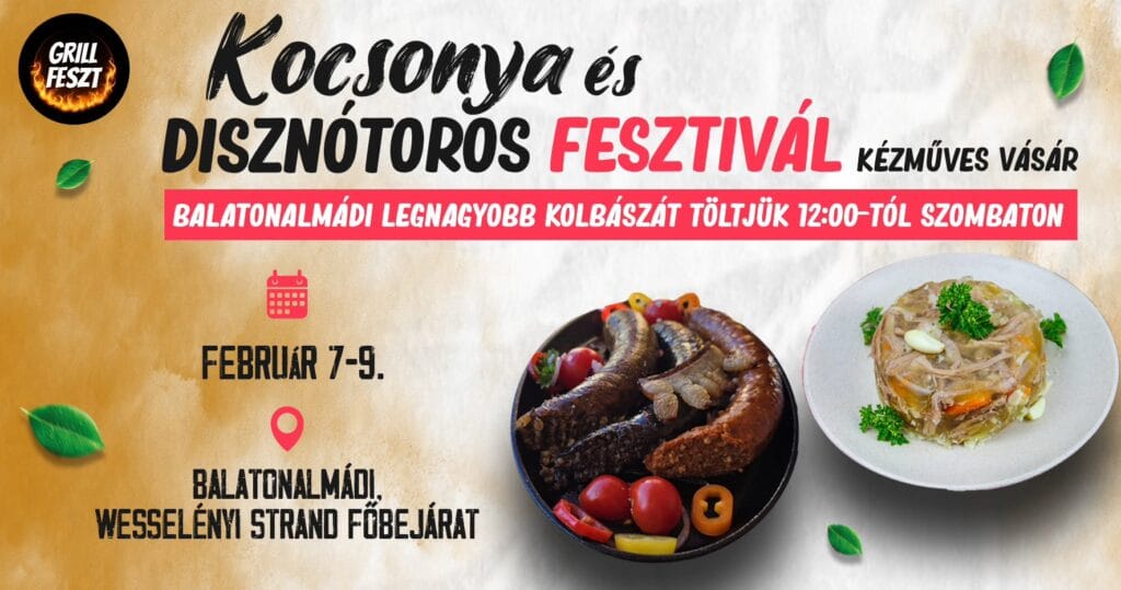 Hagyományos disznótoros ételek, ízletes kocsonya és kézműves vásár vár Balatonalmádiban! Ha szereted a klasszikus magyar ízeket, ezt a fesztivált nem érdemes kihagyni!