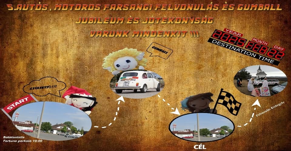 Balatonlellén 2025-ben 5. jubileumi alkalommal rendezzük meg ezt az autós farsangot ahol az autók , motorok és a tulajdonosaik is beöltözhetnek farsang alkalmából és bíztatunk is mindenkit hogy tegyenek így. Célunk , hogy mindenki jól érezze magát és együtt űzzük el a telet. Jelen eseményünk is jótékonysági lesz így a nevezési díjat ami 2000Ft, felajánljuk a balatonszemesi adománybank részére.