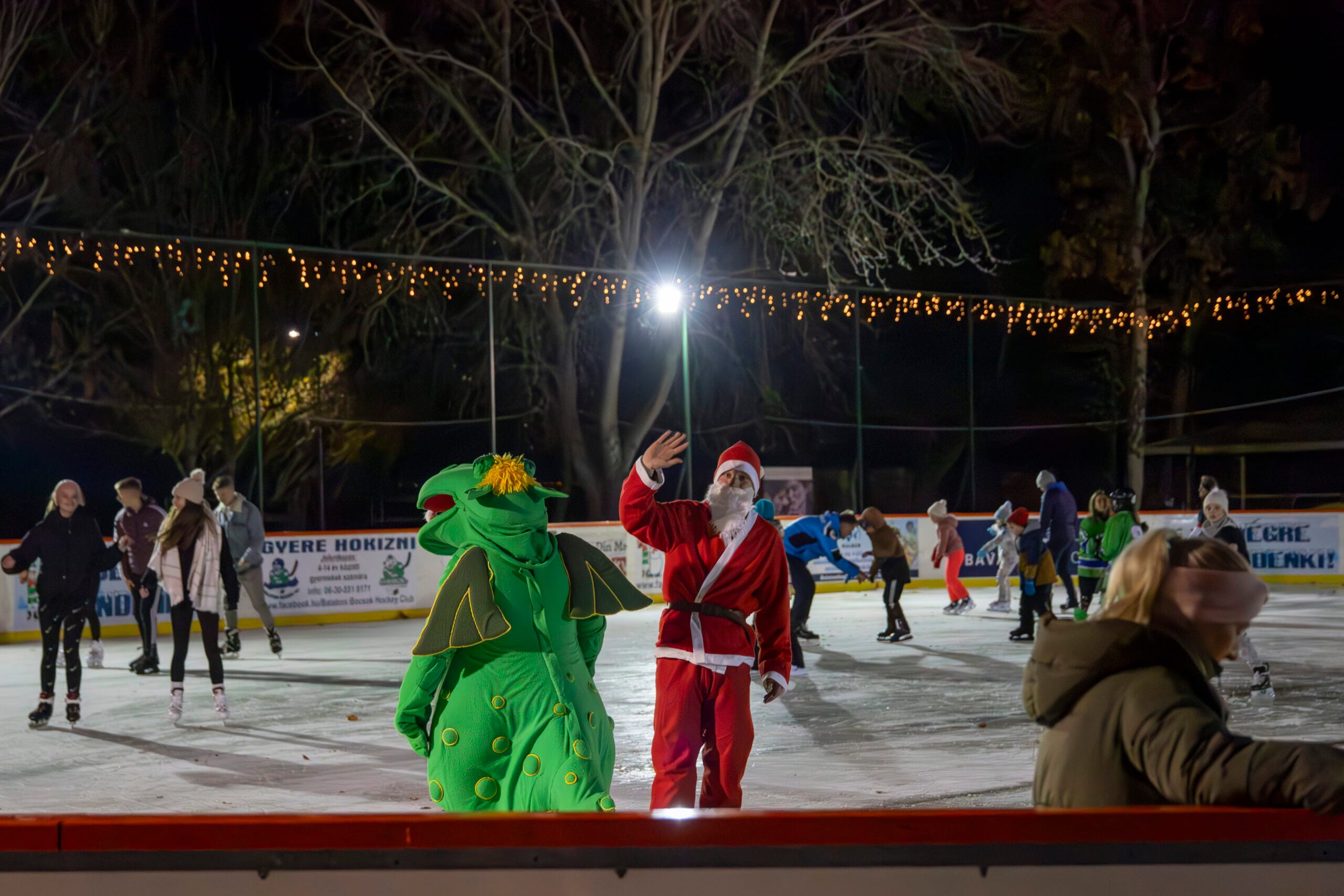- Extra szolgáltatások: Korcsolyabérlés, melegedő sátor, forró csoki a helyszínen.